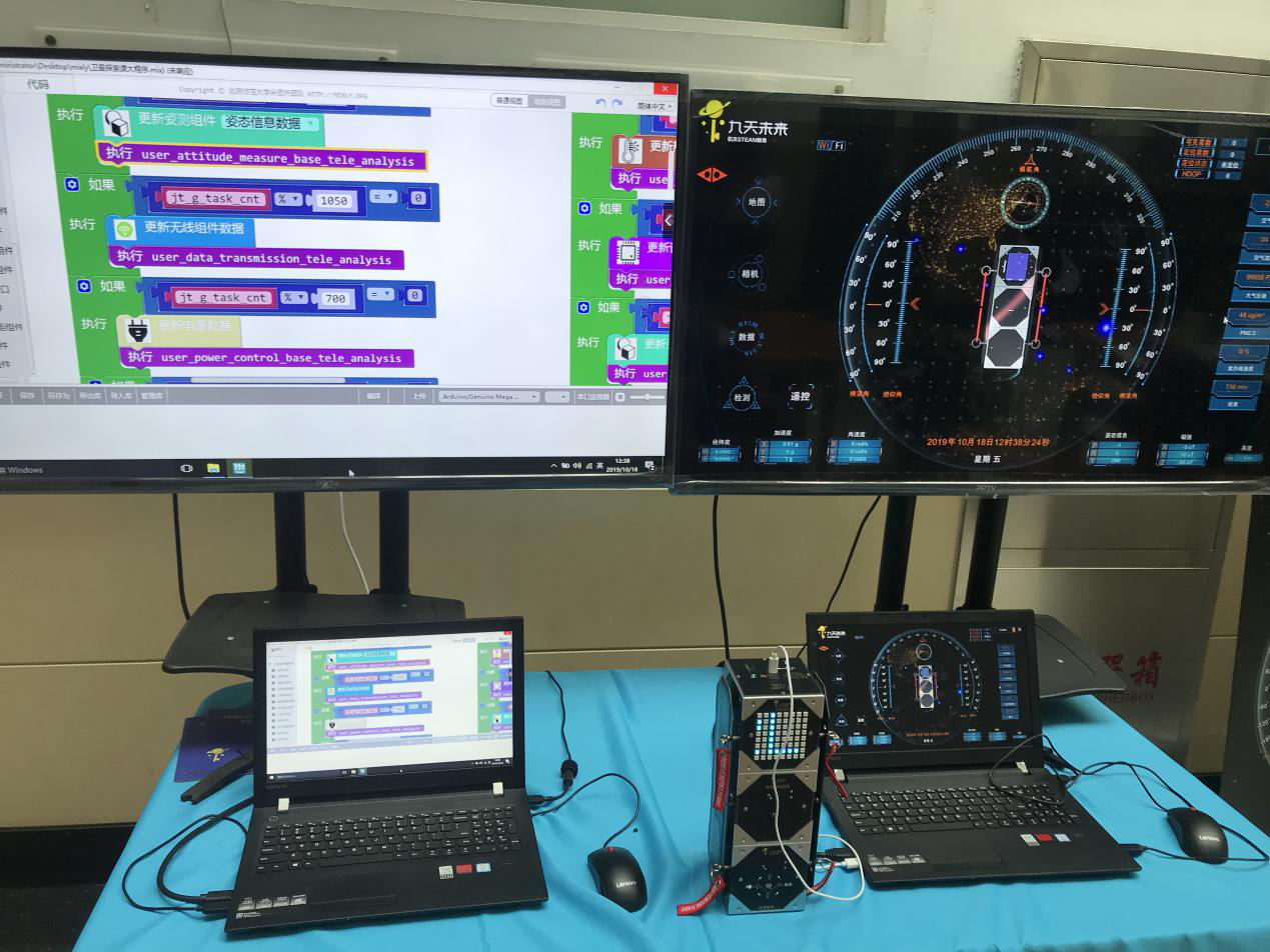 本次以航天知识科普进校园为载体,为东师附中的孩子们打开了一扇探索星空的梦想大门,通过线上模拟卫星组装发射操作区、北斗立方星与上位机互动展示区、三维地面站测控展示区三大科普互动活动,让学生们初步树立正确的宇宙观、世界观,激发孩子们积极探索太空、遨游寰宇的热情!通过北斗立方星卫星组装和三维地面测控展示课堂,在老师的指导下,学生亲自动手实践,体验了航天科技的魅力!