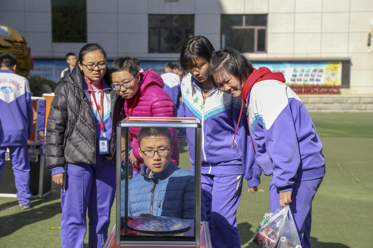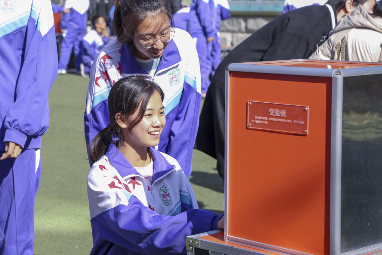 由长春中国光学科学技术馆科研团队自主研发、设计、制作的22件便携式光学展品,内容涵盖光传播的基本规律、光的偏振、视觉暂留、颜色的奥秘、视错觉、光电转换、红外现象等众多光学研究领域。作为“流动的光科馆”,光科馆科普大篷车具有全国唯一性和光学专业性,此次活动吸引了广大师生的驻足体验。