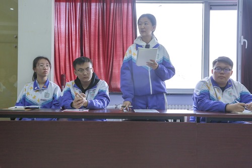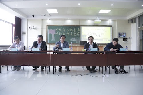 2019年10月18日,本学期第四次校长有约活动在青华校区五楼多媒体教室举行。本次活动由邵志豪校长、宋锐副校长、高二年级付桐主任、于欣副主任和团委赵明亮副书记一同主持召开,主题为“不忘初心勇担当,牢记使命再出发”。