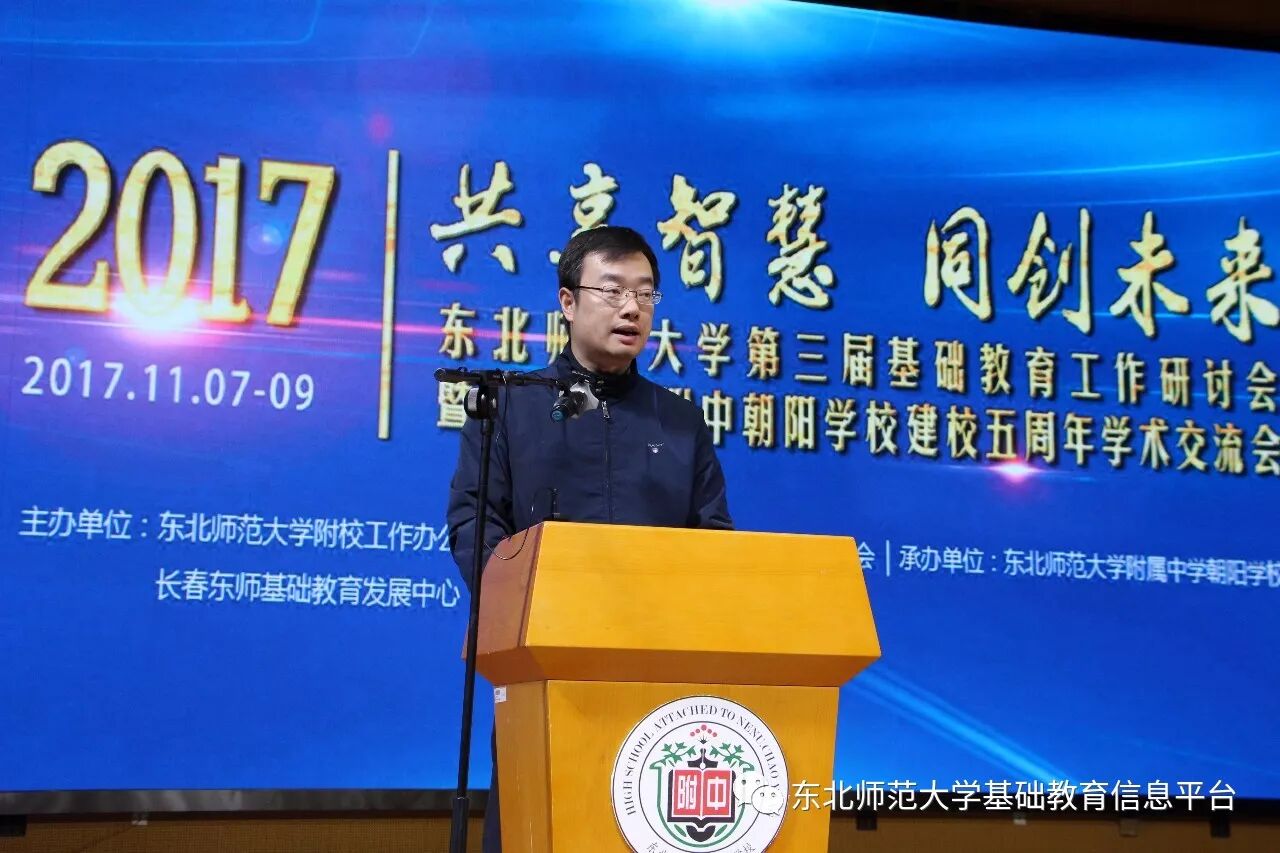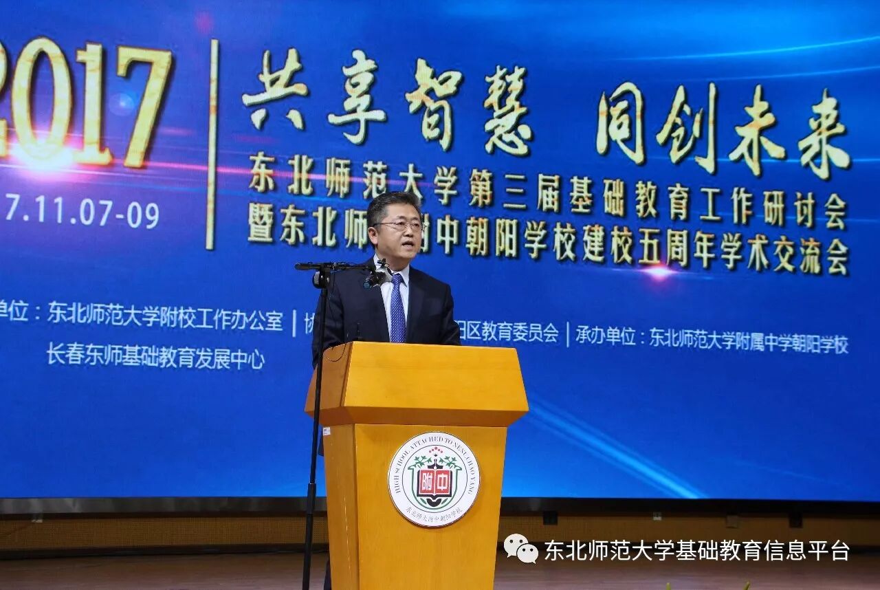 2017年11月8日上午,由东北师范大学附校工作办公室和东师基础教育发展中心主办,北京市朝阳区教委协办,东北师范大学附属中学朝阳学校承办的东北师范大学第三届基础教育工作研讨会在北京召开,本届会议以“共享智慧·同创未来”为主题。
