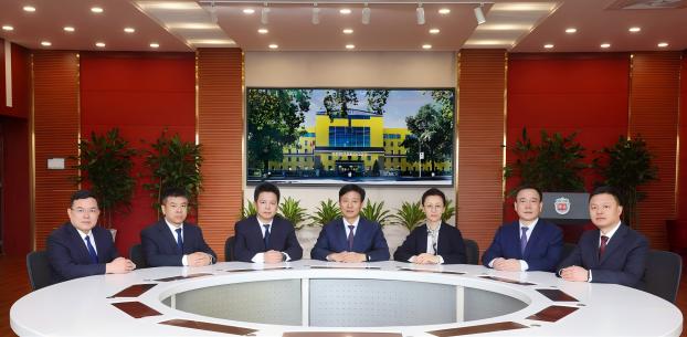 (左起:主管会计师高健,副校长、净月校区校长崔志超,常 务副校长、青华校区校长姜远才,校长、党委副书记邵志豪, 党委书记刘丽君,副校长、工会主席、初中部校长闫佳伟,党 委副书记、纪委书记杨利华)