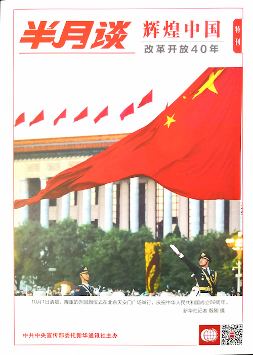 2018年12月30日,由中宣部主办,被誉为中华第一刊的《半月谈》杂志出版了“辉煌中国改革开放40年”特刊。
