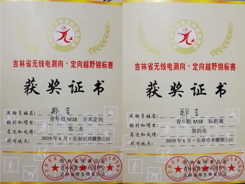 段浩轩同学获得短距离定向越野M18青年组第三名、百米定向M18青年组第六名。