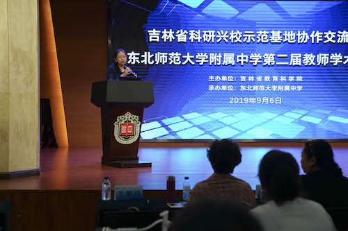 2019年9月6日,“吉林省科研兴校示范基地协作交流暨东北师范大学附属中学第二届学术论坛”隆重举行,本次论坛由吉林省教育科学院举办,东北师大附中承办,旨在深入落实国家“培养造就数以百万计的骨干教师、数以十万计的卓越教师、数以万计的教育家型教师”教师培养目标,充分发挥优质中学的学术引领作用,通过名师学术成长经历的分享,提升吉林省教师的学术能力和学术视野,培育个性化教学思想形成。吉林省200余位校长和教师、2019边远贫困地区农村校长助力工程提升乡村初中校长学校内部管理能力培训班和2019提升新疆生产建设兵团高中校长领导能力培训班共计95人,东北师大附中合作校、教育帮扶学校和联盟校75人参会。会议由东北师大附中高中部副校长刘玉新主持。会议主题是“扎根课堂,促进教师学术型成长” 。